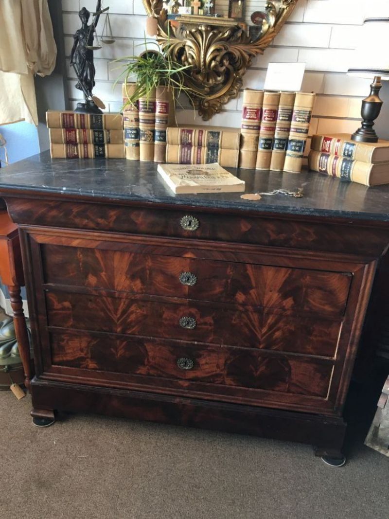 Circa 1850 flame mahogany marble topped chest TOM $695